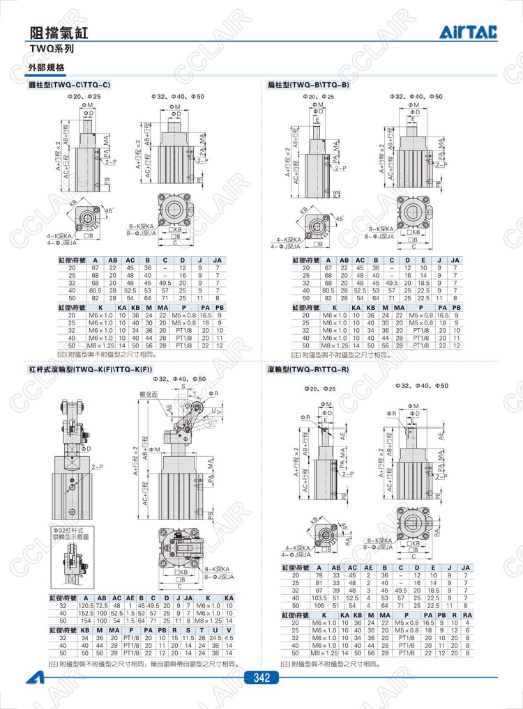 亞德客AIRTAC,TWQ20*10-C,TWQ20*10-B,TWQ20*10-R,TTQ20*10-C,TTQ20*10-B,TTQ20*10-R,TTQ20*10-K,阻擋氣缸