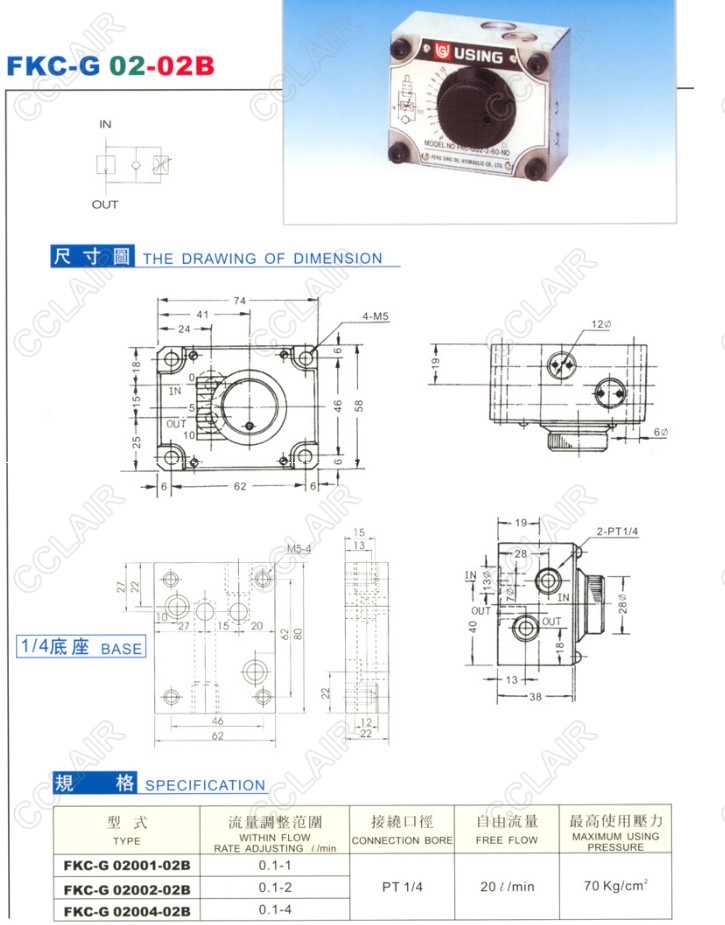 USING峰欣流量控制閥 FKC-G02001-02B,FKC-G02002-02B,FKC-G02004-02B