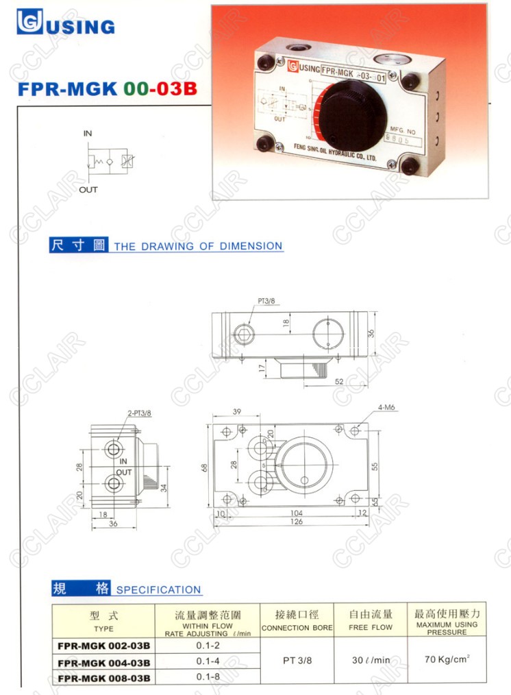 USING峰欣 FPR-MGK002-03B,FPR-MGK004-03B,FPR-MGK008-03B,流量控制閥