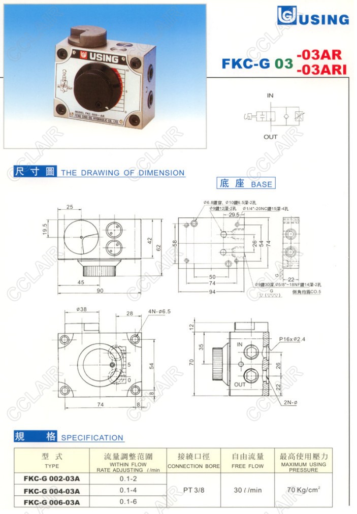 USING峰欣 FKC-G002-03A,FKC-G004-03A,FKC-G006-03A,流量控制閥
