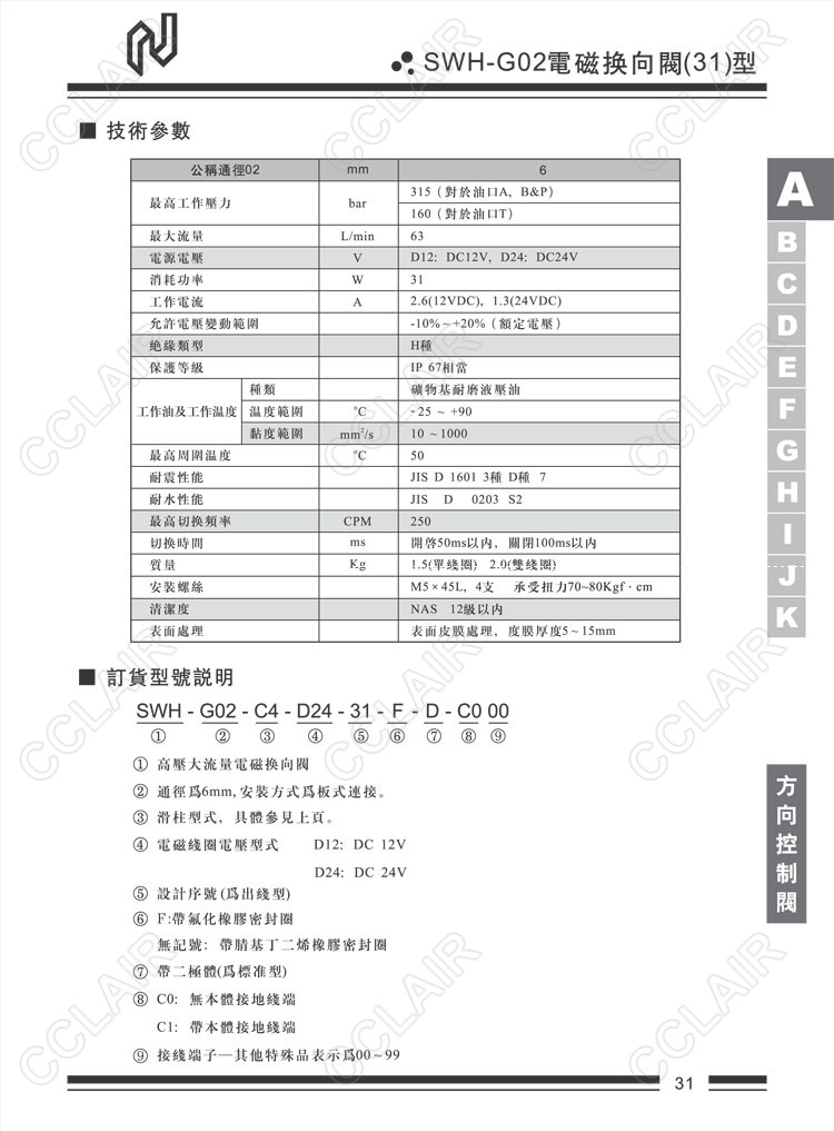 Northman臺(tái)灣北部精機(jī),電磁換向閥(31型)SWH-G02-C2-D12-31-F-D-C0,SWH-G02-C3-D12-31-D-C1,SWH-G02-C40-D24-31-D-C1,SWH-G02-C6-D24-31-D-C0,SWH-G02-C8-D12-31-D-C0,SWH-G02-C4B-D24-31-F-D-C1, SWH-G02-C5B-D24-31-F-D-C0,SWH-G02-C60BS-D24-31-D-C0,SWH-G02-C9S-D12-31-D-C1