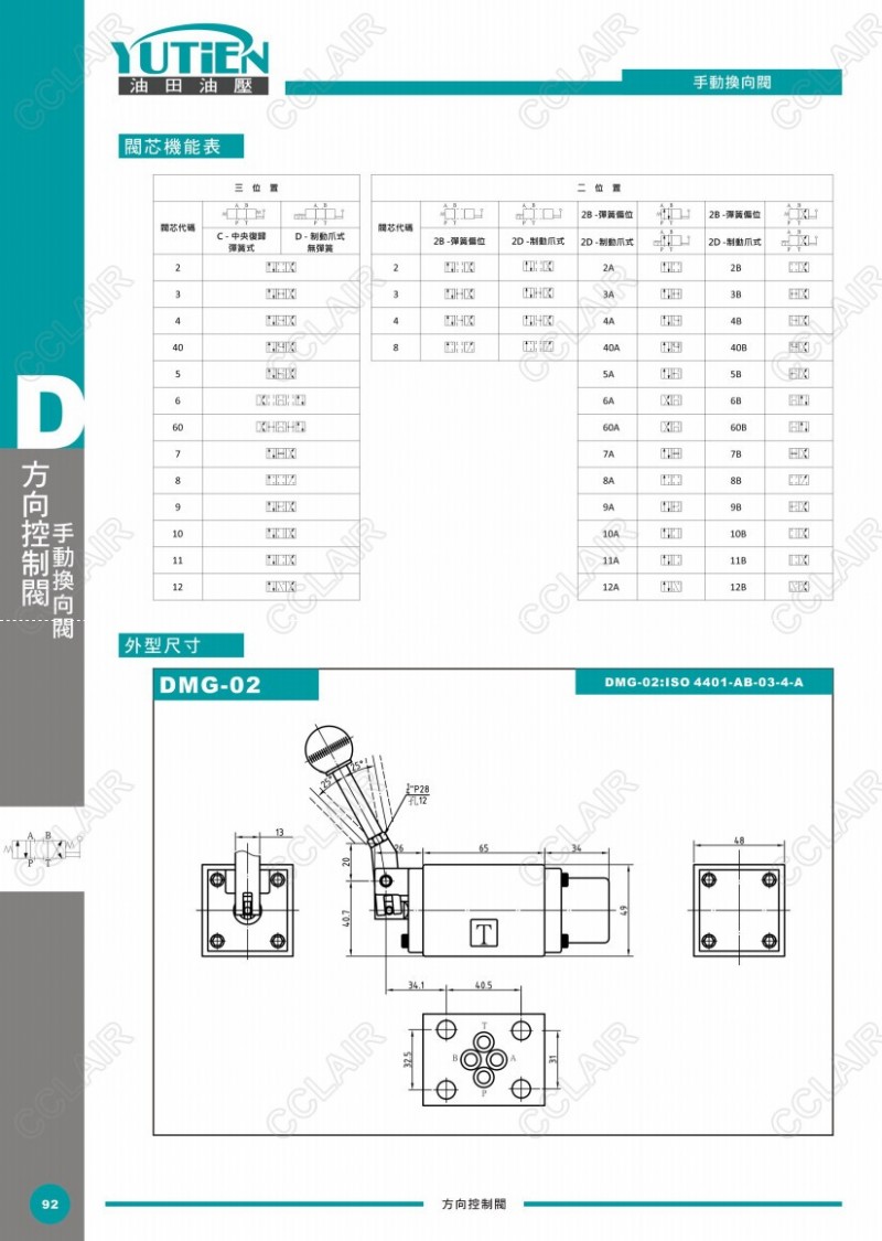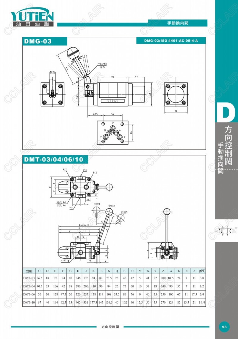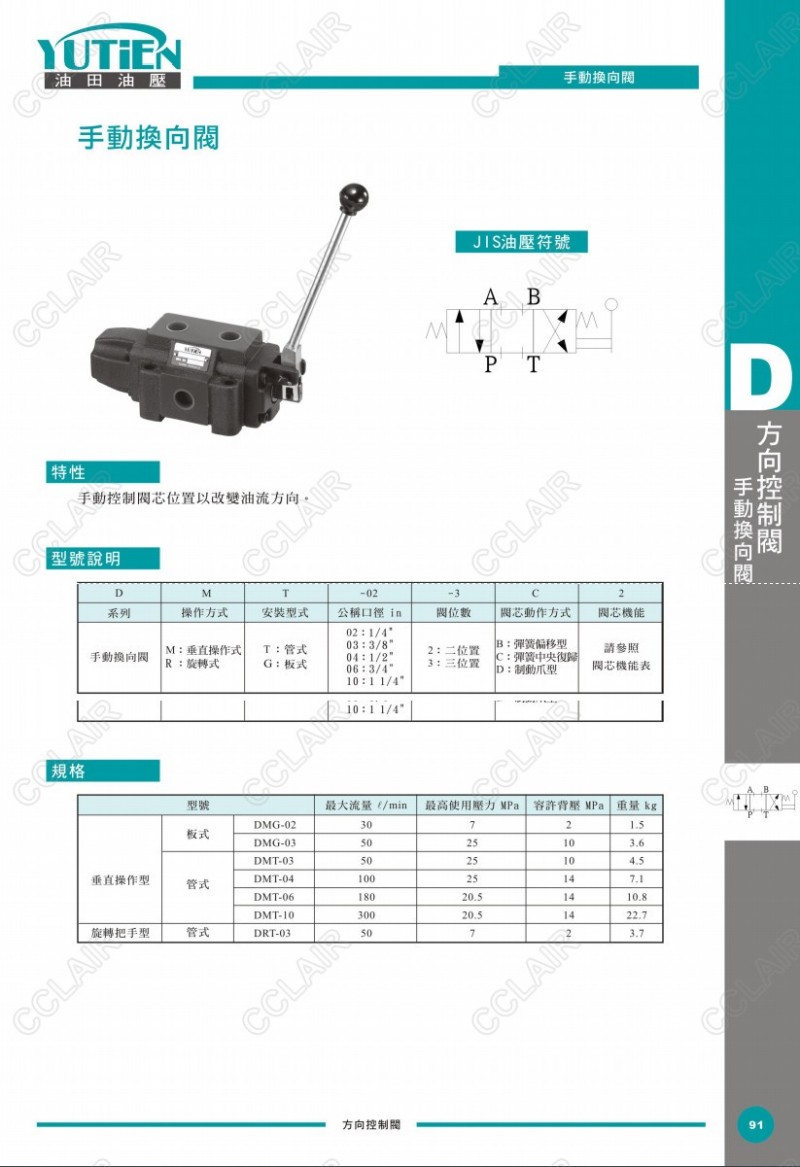 YUTIEN油田手動(dòng)換向閥DMG-02,DMG-03,DMT-03,DMT-04,DMT-06,DMT-10,DRT-03