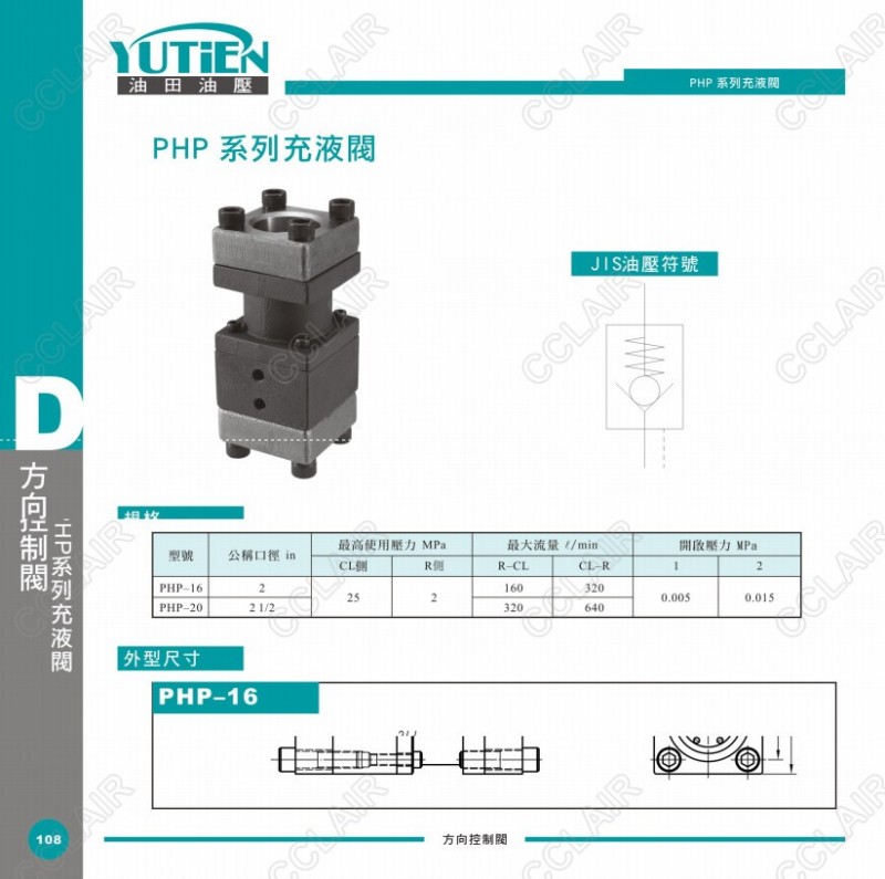YUTIEN油田充液閥PHP-16,PHP-20
