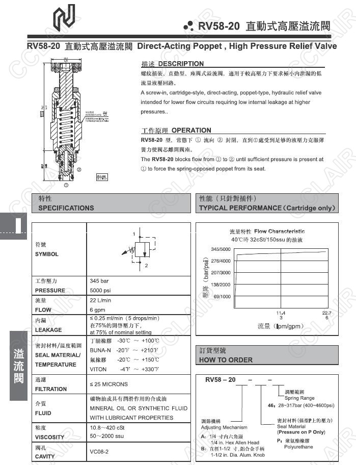 Northman北部精機(jī),直動(dòng)式高壓溢流閥RV58-20A-P-46,RV58-20B-P-46