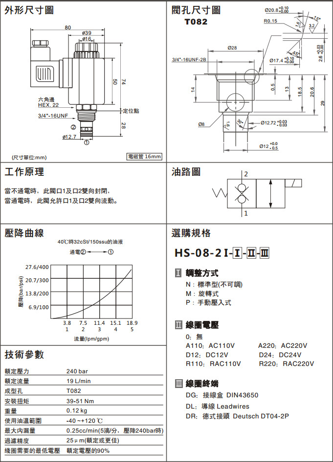HS-08-2I-P-0-DR,HS-08-2I-P-A110-DR,HS-08-2I-P-D12-DR,HS-08-2I-P-R110-DR,HS-08-2I-P-A220-DR,HS-08-2I-P-D24-DR,HS-08-2I-P-R220-DR,兩通常閉型雙向截止電磁換向閥