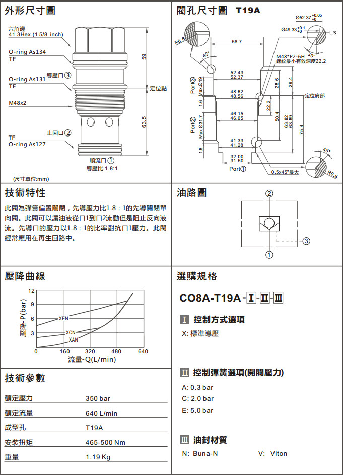 CO8A-T19A-XAN,CO8A-T19A-XCN,CO8A-T19A-XEN,CO8A-T19A-XAV,CO8A-T19A-XCV,CO8A-T19A-XEV,導壓關單向閥
