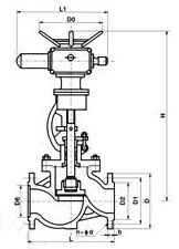 1.6MPa | DN | L | D | D1 | b | n-φd | 電裝型號(hào) | L1 | H | D0 |