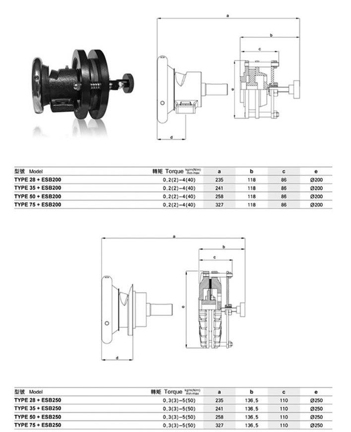TYPE28+ESB200,TYPE35+ESB200,TYPE50+ESB200,TYPE75+ESB200,TYPE28+ESB250,TYPE35+ESB250,TYPE50+ESB250,TYPE75+ESB250安全夾頭配手動(dòng)制動(dòng)器