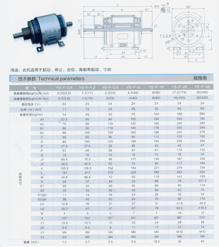 YS-F-0.6,YS-F-1.2,YS-F-2.5,YS-F-5,YS-F-10,YS-F-20,YS-F-40,電磁離合、制動(dòng)器組合