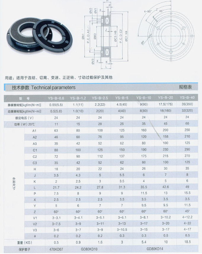 YS-B-0.6,YS-B-1.2,YS-B-2.5,YS-B-5,YS-B-10,YS-B-20,YS-B-40,干式單板電磁制動(dòng)器