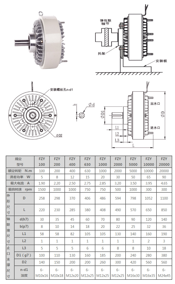 FZY100,FZY200,FZY400,FZY630,FZY1000,FZY2000,FZY5000,FZY10000,FZY20000單出軸磁粉制動器