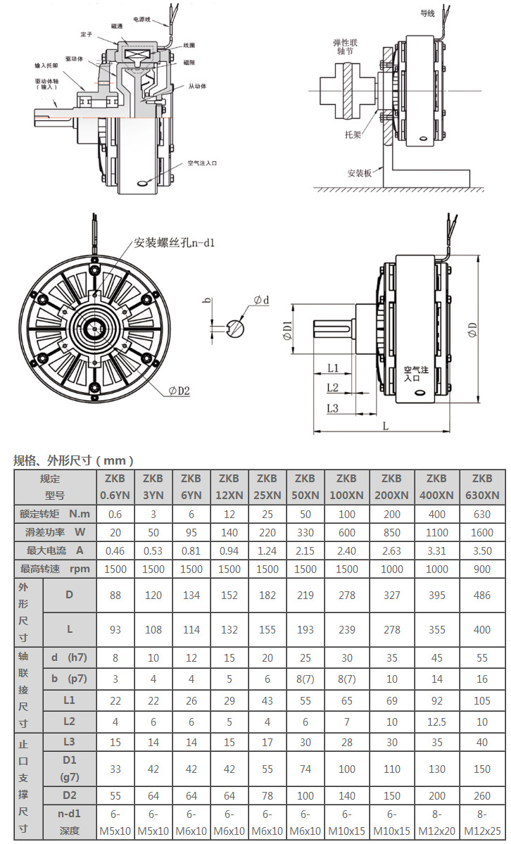 ZKB0.6YN,ZKB3YN,ZKB6YN,ZKB12XN,ZKB25XN,ZKB50XN,ZKB100XN,ZKB200XN,ZKB400XN,ZKB630XN單出軸磁粉制動(dòng)器
