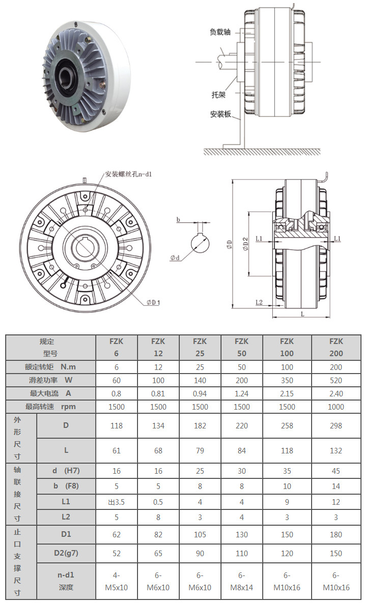 FZK6,FZK12,FZK25,FZK50,FZK100,FZK200,空心軸磁粉制動器