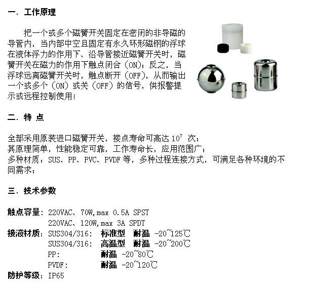 XFL-S45I,RF系列小型不銹鋼浮球開關(guān)