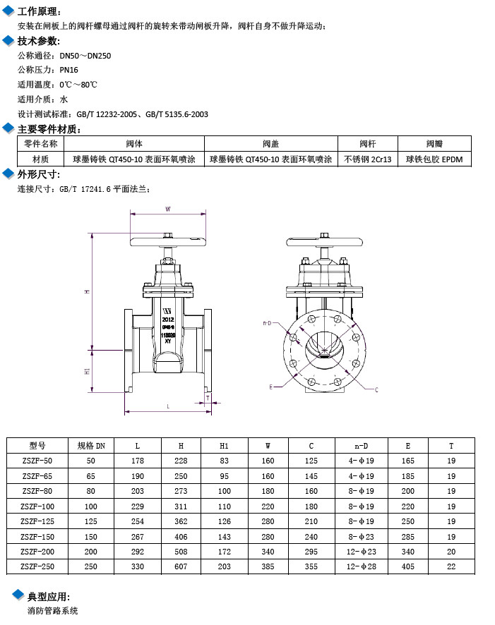 ZSZF-50,65,ZSZF-80,ZSZF-100,ZSZF-125,ZSZF-150,ZSZF-200,ZSZF-250,消防暗桿手輪彈性座封閘閥