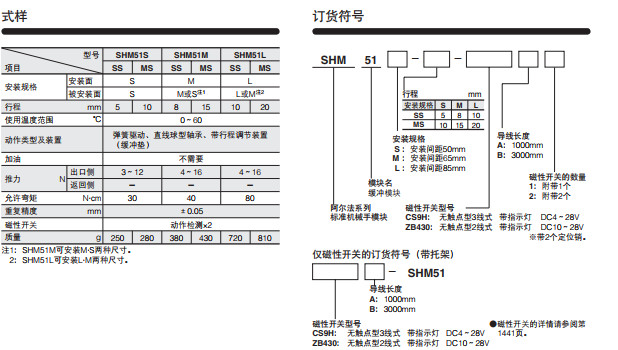 SHM51S-SS,SHM51S-MS,SHM51M-SS,SHM51M-MS,SHM51L-SS,SHM51L-MS,標準機械手模塊--緩沖模塊