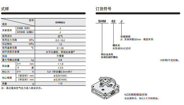 SHM62J,標準機械手模塊微型系列--柔性模塊NZ式樣