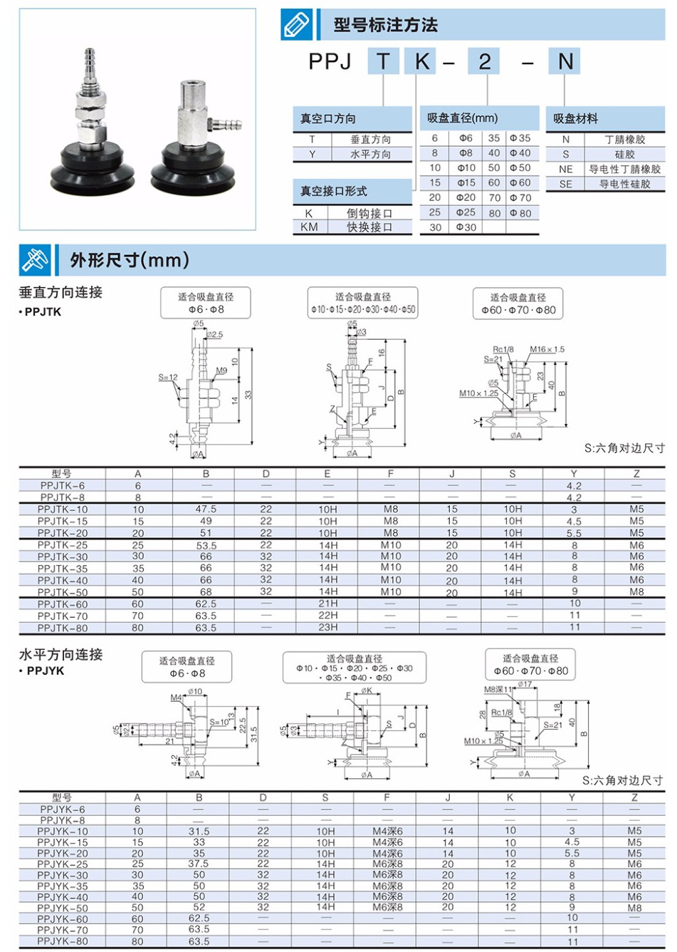 PPJTK-6,PPJTK-8,PPJTK-10,PPJTK-15,PPJTK-20,PPJTK-25,薄型雙層垂直/水平真空口無(wú)緩沖吸盤組