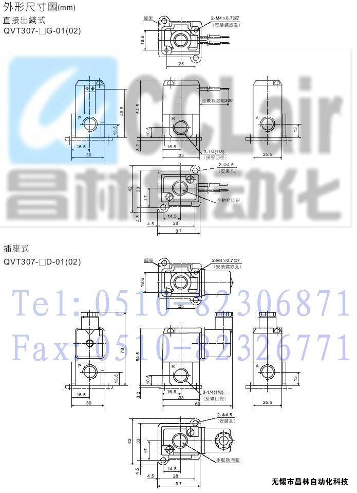QVT307-3G-01(02),QVT307-3D-01(02),QVT307-4G-01(02),QVT307-4D-01(02),二位三通直動(dòng)型電控?fù)Q向閥