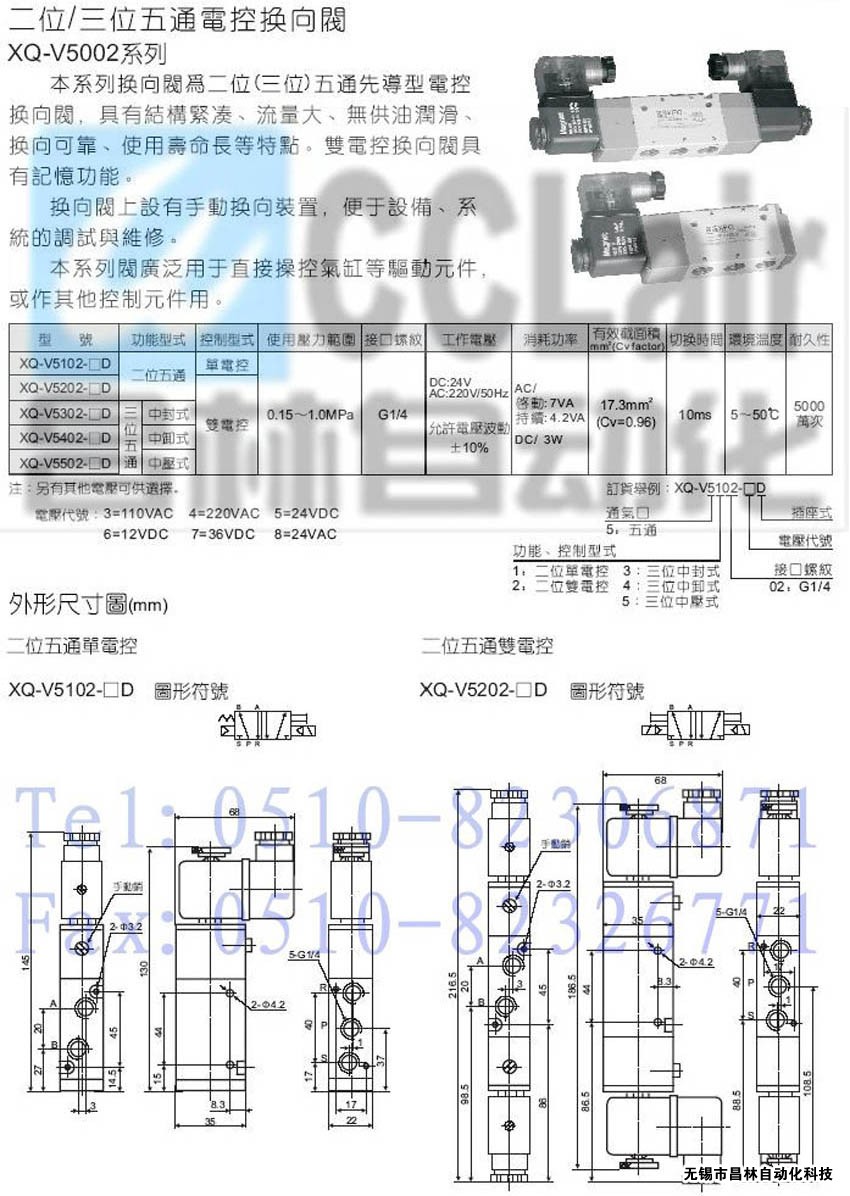 XQ-V5502-4D,XQ-V5502-5D,XQ-V5502-6D,XQ-V5502-7D,XQ-V5502-8D,二位/三位五通電控換向閥