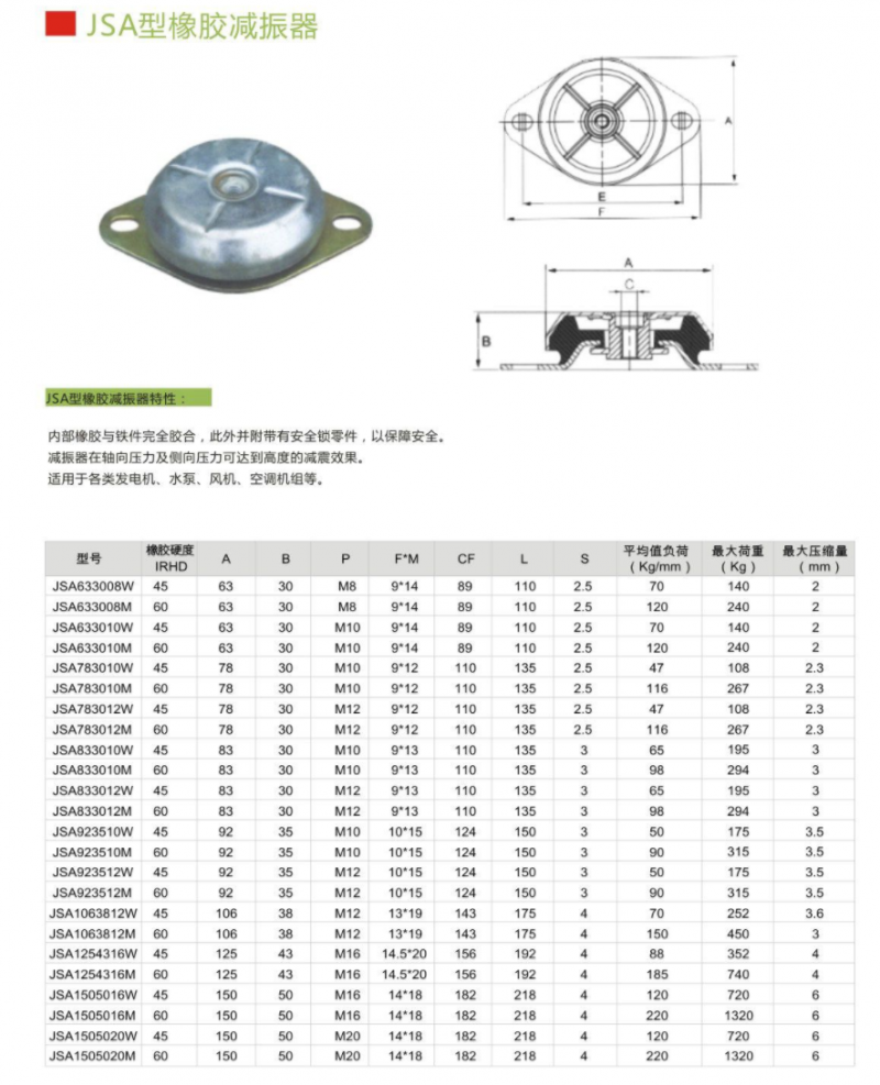橡膠減振器 JSA633008W,JSA633008M,JSA633010W,JSA633010M,JSA783010W,JSA783010M,JSA783012W