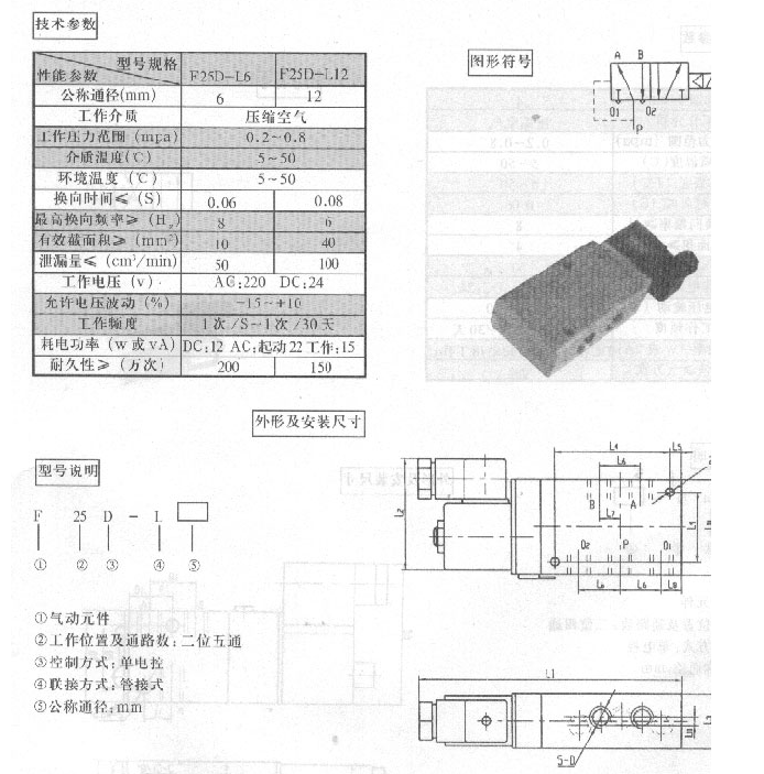 二位五通單電控滑閥F25D-L6,F25D-L12