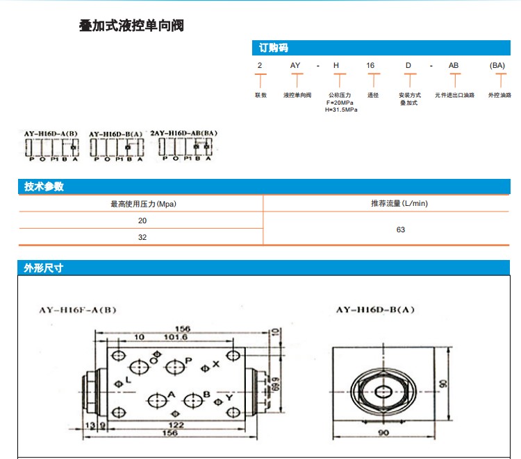 AY-H16D-A(B),AY-H16D-B(A),2AY-H16D-AB(BA),疊加式液控單向閥