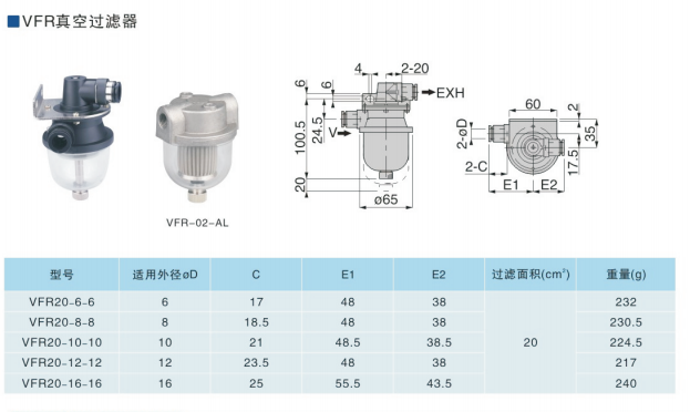 SMC型真空過濾器VFR20-10-10,VFR20-12-12