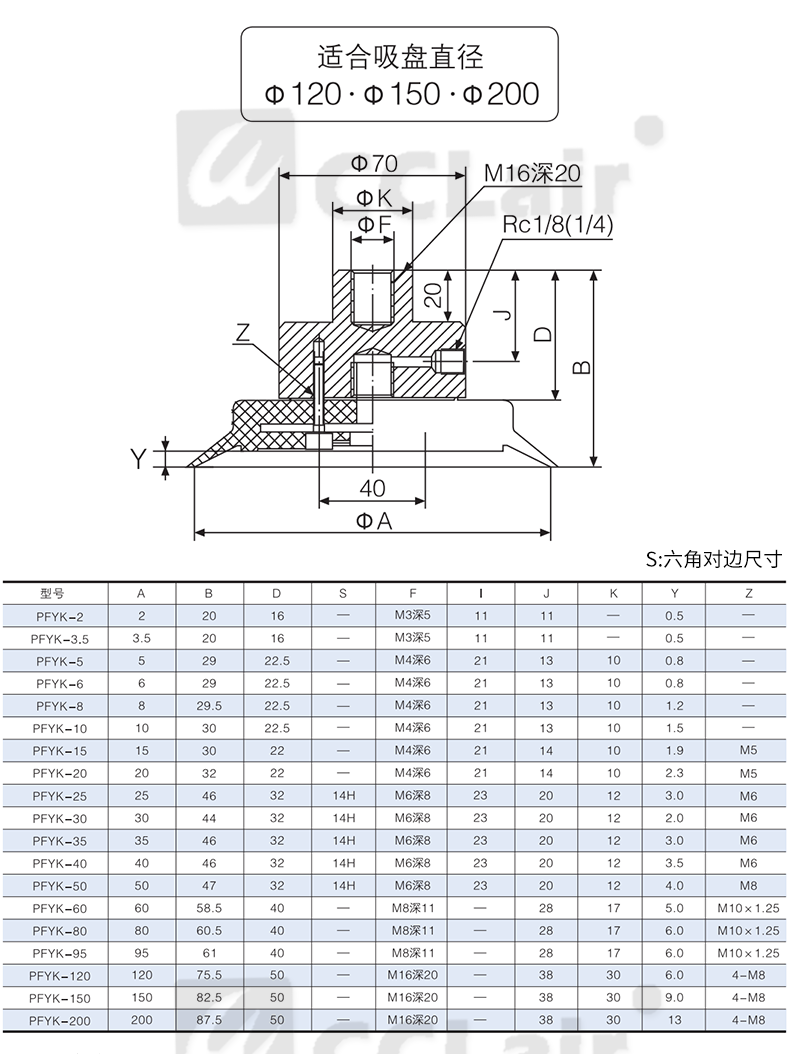 真空吸盤PFYK-3.5A,PFYK-6A,PFYK-8A,PFYK-10A,PFYK-15,PFYK-20,PFYK-25,PFYK-30,PFYK-35,PFYK-40,PFYK-50,PFYK-60,PFYK-80,PFYK-95,PFYK-120,PFYK-150,PFYK-200吸鐵板50鋼板吸盤