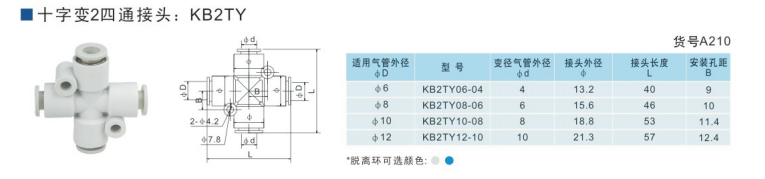 SMC型十字變2四通接頭KB2TY06-04,KB2TY08-06,KB2TY10-08,KB2TY12-10,