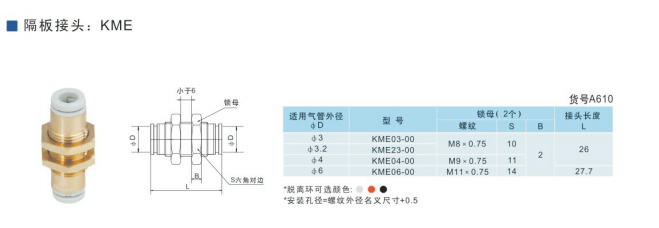 SMC型隔板接頭KME03-00,KME23-00,KME04-00,KME06-00,