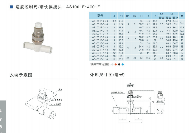 SMC型帶快換接頭AS1001F-04-3,AS1001F-06-3,AS2001F-04-3,AS2001F-06-3,AS2051F-06-3,AS2051F-08-3,AS3001F-06-3,AS3001F-08-3,AS3001F-10-3,AS3001F-12-3,AS4201F-10-3,AS4201F-12-3,