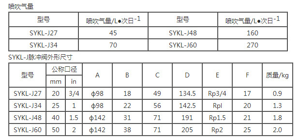 電磁脈沖閥SYKL-J27,SYKL-J34,SYKL-J48,SYKL-J60,SYKL-J76,