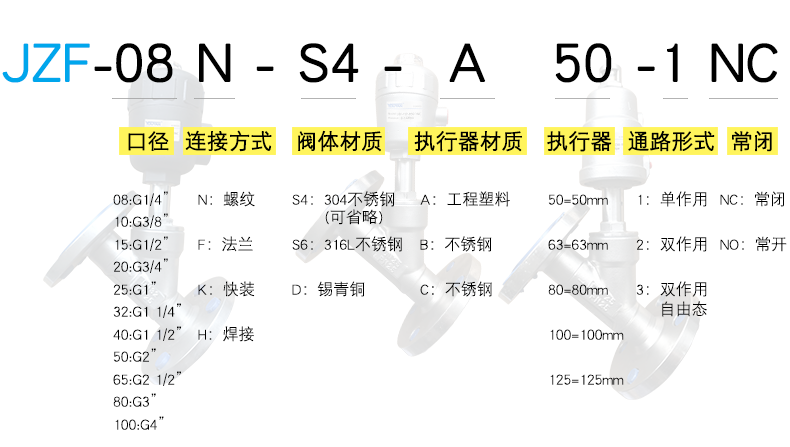 氣動角座閥JZF-15F-A50-1NC,JZF-20F-A50-1NC,JZF-25F-A50-1NC,JZF-25F-A63-1NC,JZF-32F-A63-1NC,JZF-40F-A63-1NC,JZF-50F-A63-1NC,JZF-50F-A80-1NC,JZF-15F-B50-1NC,JZF-20F-B50-1N,JZF-25F-B50-1NC,JZF-25F-B63-1NC,JZF-32F-B63-1NC,JZF-40F-B63-1NC,JZF-50F-B63-1NC,JZF-50F-B80-1NC,JZF-15F-C50-1NC,JZF-20F-C50-1N,JZF-25F-C50-1NC,JZF-25F-C63-1NC,JZF-32F-C63-1NC,JZF-40F-C63-1NC,JZF-50F-C63-1NC,JZF-50F-C80-1NC,