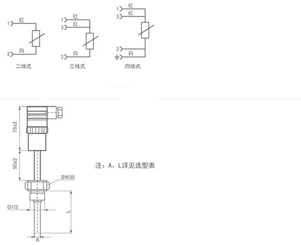 TP11包含一個PT100探頭,PT100阻值會隨溫度變化而變化,TP11有二線式,三線式,四線式幾種規(guī)格可供選擇。