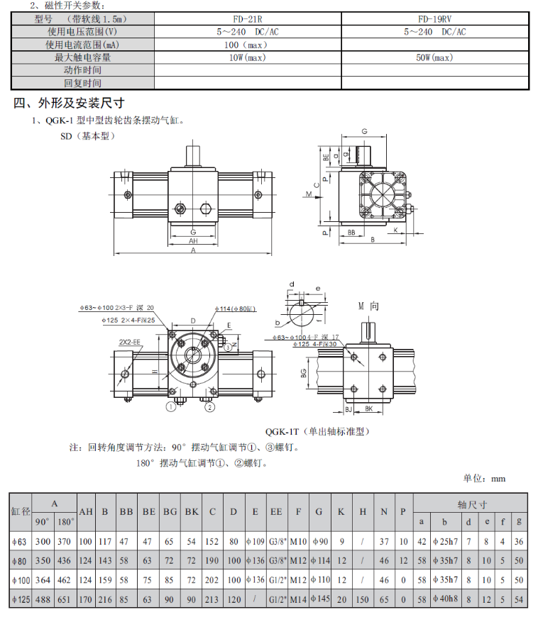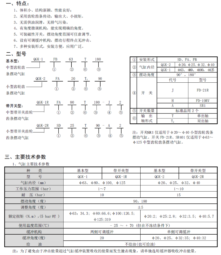 QGK無(wú)給油潤(rùn)滑齒輪齒條擺動(dòng)氣缸