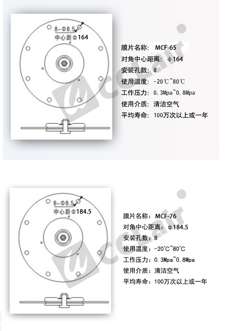 MCF-25 膜片,MCF-35 膜片,MCF-40 大膜片,脈沖閥附件