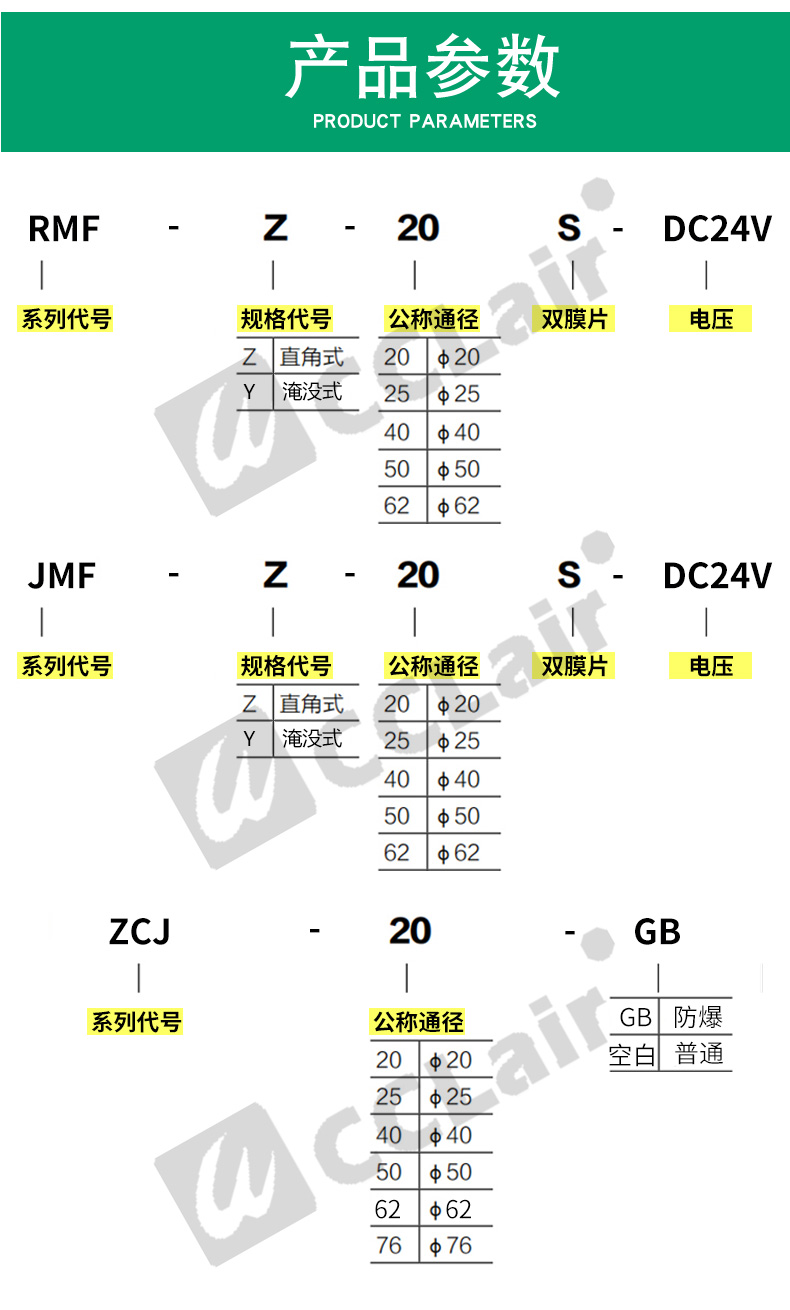 ZCJ-20, ZCJ-25, ZCJ-40S,直角式電磁脈沖閥 ZCJ-50S,ZCJ-62S,ZCJ-76S,
