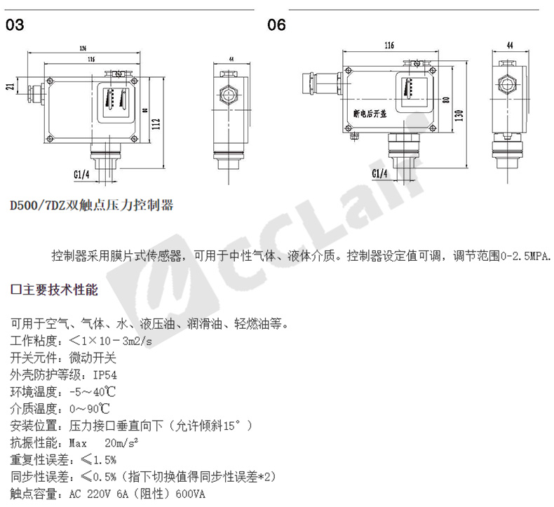 0812208,0814508,0812508,0814608,壓力控制器 D500/7DZ切換差不可調(diào)