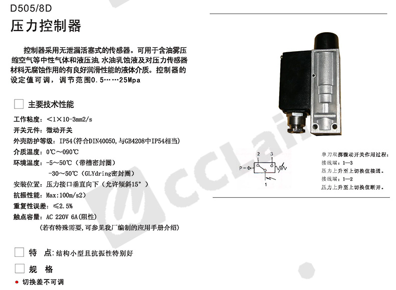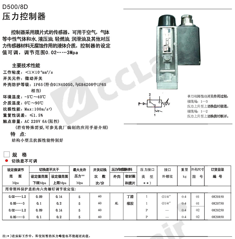 0815108,0813508,0815208,0813608,壓力控制器 D501/7DZ切換差不可調(diào)