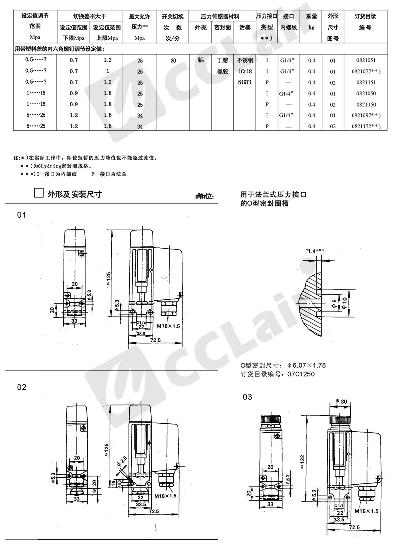 0815107,0813507,0815207,0813607,壓力控制器 D501/7DK切換差不可調(diào) 0815307,0813707,