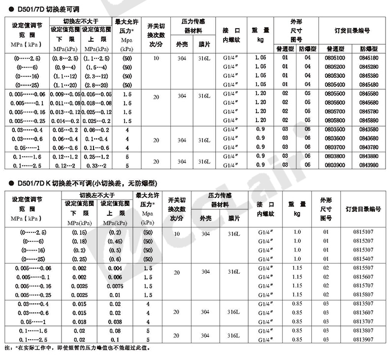 0845180,0843580,0845280,0843680,壓力控制器 防爆 D501/7D切換差可調(diào) 0845380,0843780