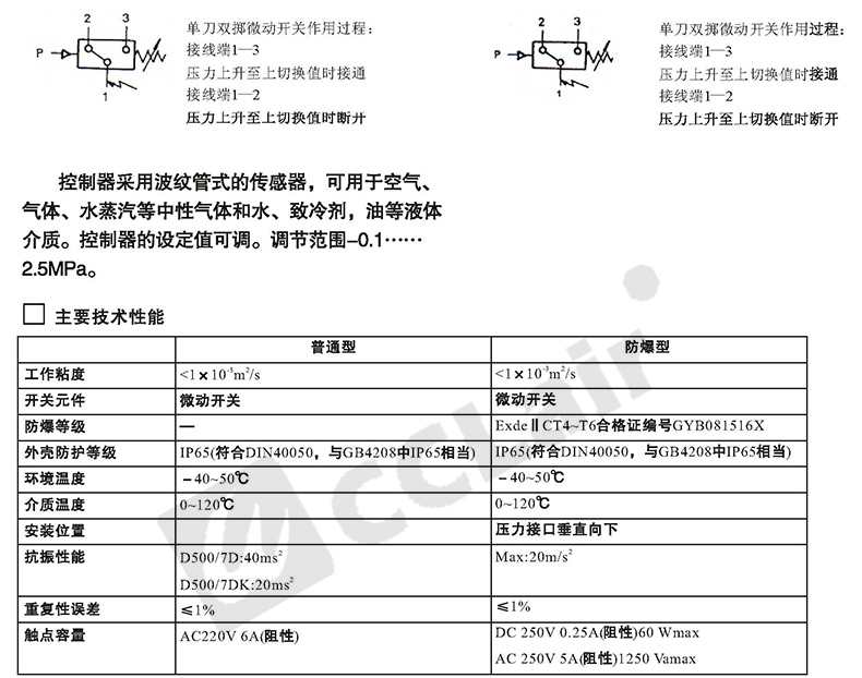 0840180,0841580,0840280,0841680,壓力控制器 防爆 D502/7D切換差可調(diào)