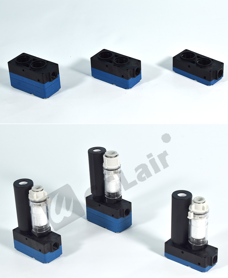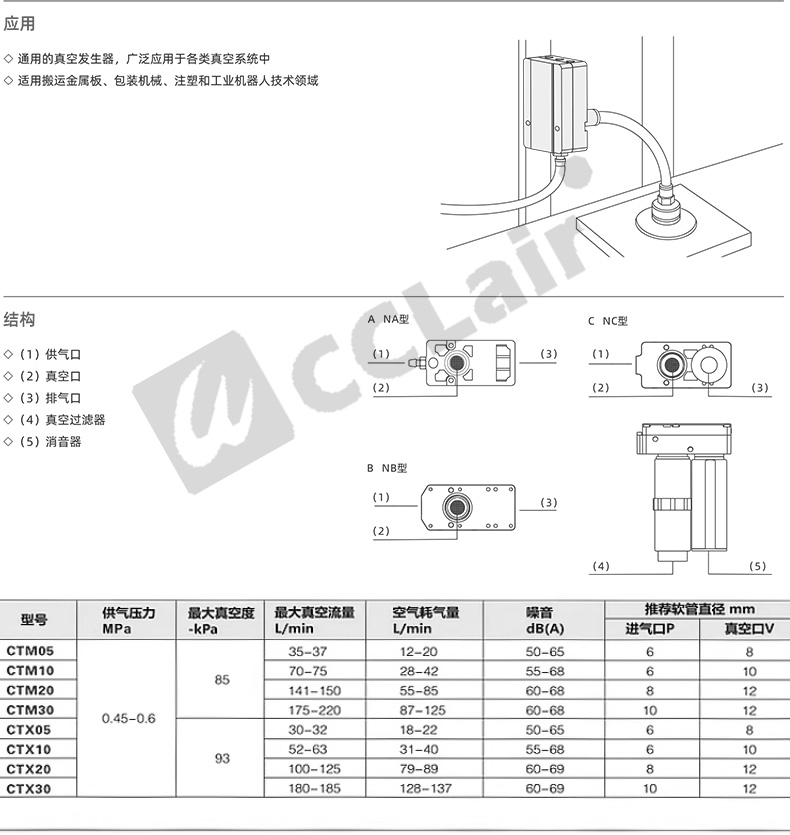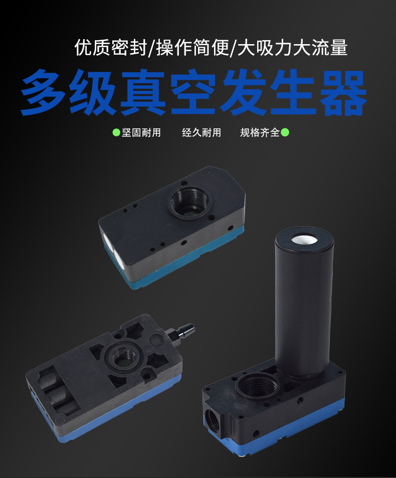 多級(jí)高真空型發(fā)生器的工作原理是利用噴管高速?lài)娚鋲嚎s空氣,?在噴管出口形成射流,?產(chǎn)生卷吸流動(dòng)。?這種工作原理使得噴管出口周?chē)目諝獠粩嗟乇怀槲撸?從而使吸附腔內(nèi)的壓力降至大氣壓以下,?形成一定真空度。