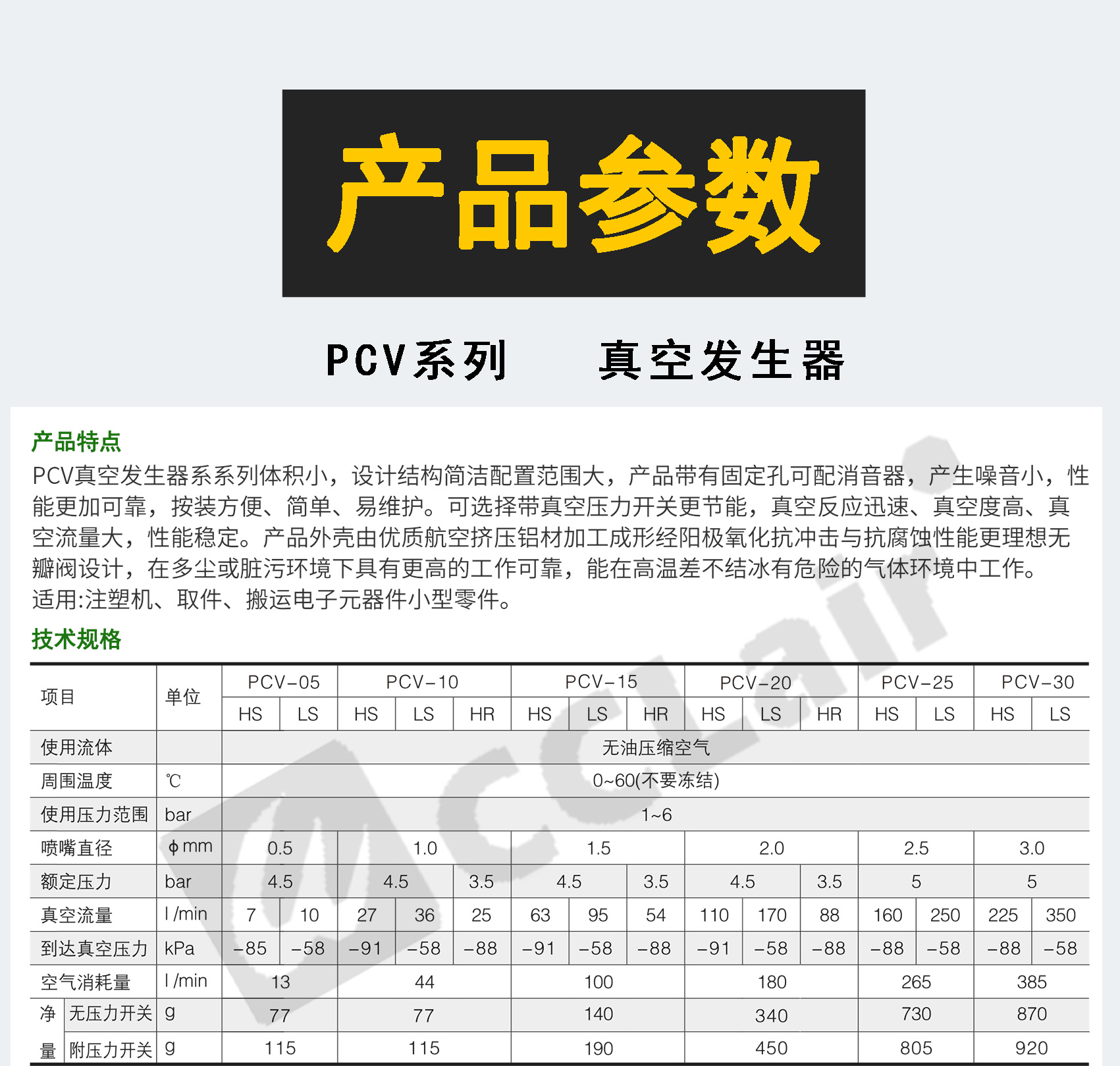 PCV-10HS,PCV-15HS,PCV-20HS,PCV-25HS,PCV-30HS,PCV-10LS,PCV-15LS,PCV-20LS,PCV-25LS,PCV-30LS,PCV-10HS-MD,PCV-15HS-MD,PCV-20HS-MD,PCV-25HS-MD,PCV-30HS-MD,PCV-10LS-MD,PCV-15LS-MD,PCV-20LS-MD,PCV-25LS-MD,PCV-30LS-MD真空發(fā)生器