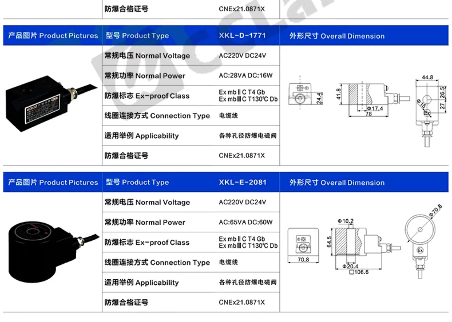 XKL-A-0911,XKL-B-1121,XKL-B-1231,XKL-C-1341,XKL-C-1451,XKL-E-2081,XKL-D-1661,XKL-D-1871防爆電磁閥