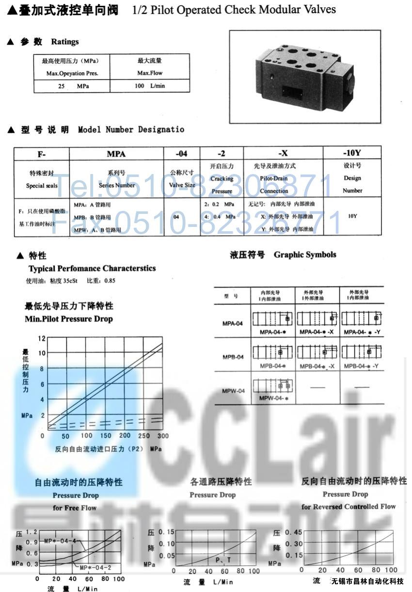 MPW-04-2-Y-10Y,MPW-04-4-X-10Y,MPW-04-4-Y-10Y,疊加式液控單向閥,榆次油研疊加式液控單向閥,YUKEN疊加式液控單向
