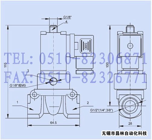 本閥是二位四通,一個進氣孔,兩個工作孔,一個排氣孔。專用性強,產品性能用途相當與一個常開的二位二通電磁閥和一個二位三通的電磁閥整和。大大降低拉電磁閥的材料和制造成本,而且還使管路由繁而簡。此閥結構簡單,體積小,密封性能好,維修方便。