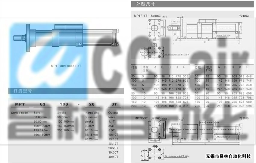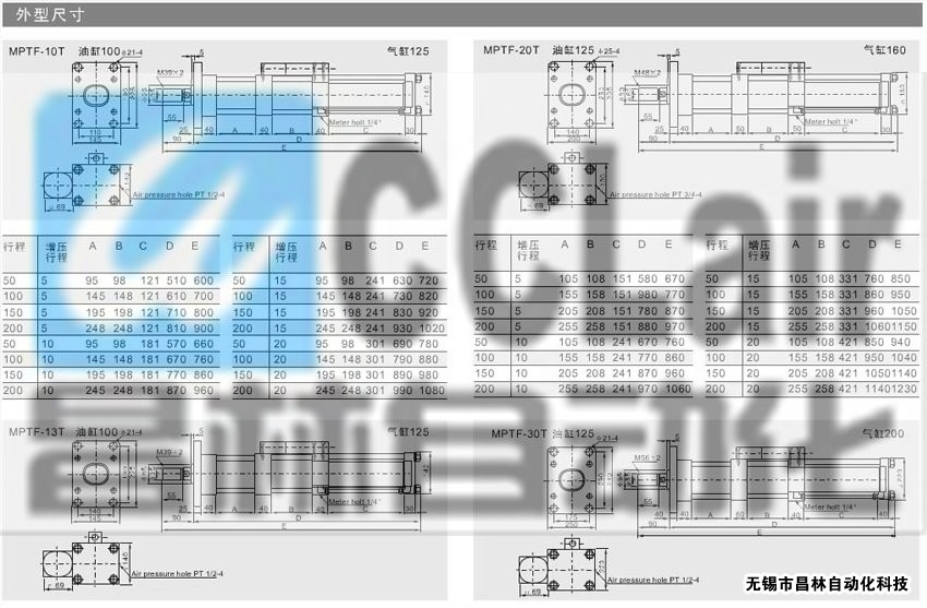 MPTF160-150-5-1T,MPTF160-150-5-3T,MPTF160-150-5-5T,MPTF160-150-5-10T,氣液增壓缸