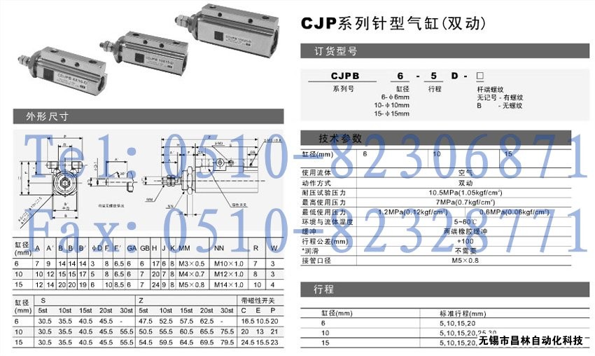 CJPB15-25D,CJPB15-30D,CJPB6-5D-B,CJPB6-10D-B,CJPB6-15D-B,CJPB6-20D-B,針型氣缸(雙動)